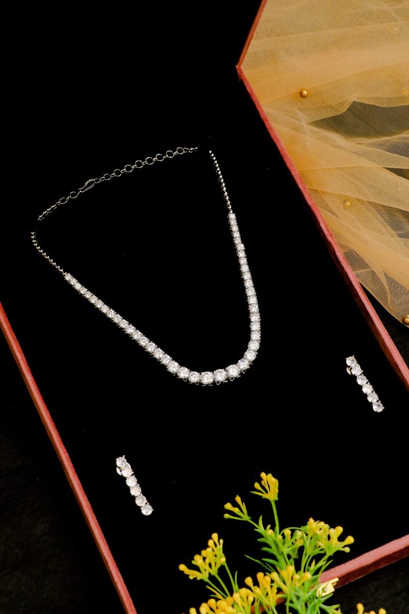 Single Line Solitaire Set in Rhodium Polish for Rent – Necklace, Earrings